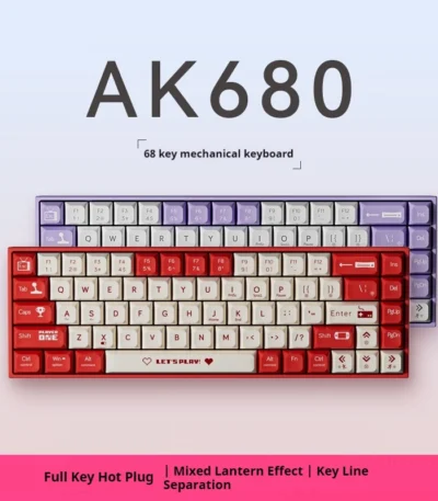 AJAZZ AK680 Gaming Mechanical Keyboard ABS Keycap 68 Keys Wired Wireless Bluetooth Keyboard Hot Swap Custom Gasket for Pc Laptop
