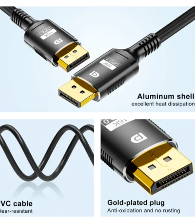 16K DP 2.1 8K@120Hz 4K@240Hz 80Gbps HDR Video Audio Displayport Cable Display Port for Laptop TV Xbox Projector Gaming Monitor