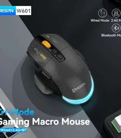 12800DPI 2.4G Wireless Bluetooth Wired Tri-mode Mouse Mute Button Macro Programming Carbon Fiber Gaming Mouse 500mAh 7 Keys