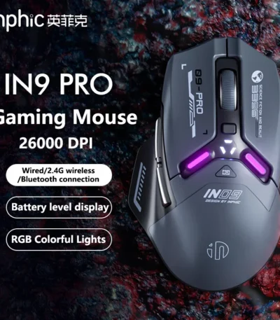 Inphic IN9 PRO Bluetooth Mouse Rechargeable 2.4G Wireless 26000DPI RGB Gaming Mouse Ergonomics Supports Wired Connections
