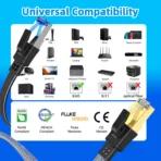 CAT8 LAN cord wrapped with quality cotton braided cord, which makes the LAN cable stronger and more durable. ??Withstands any twist, tug, and tangle, make the network cable more anti-corrosion, anti-aging, tough for use. HPUFTO's Cat8 patch cord precise preparation, reinforced treatment, flexible and not tangled, long use will not break.
