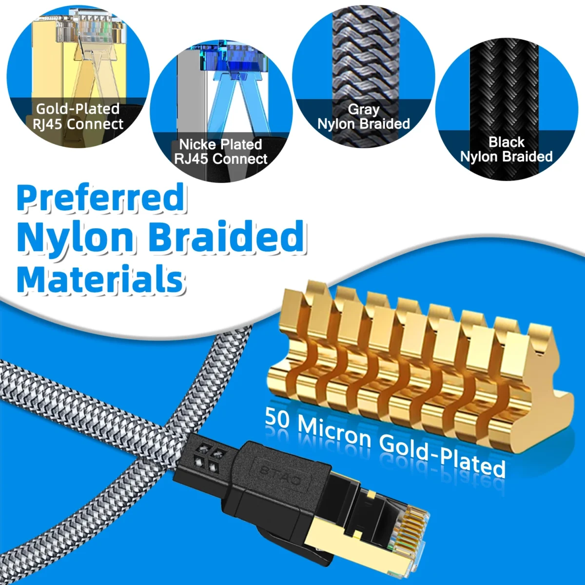 Model Number: CAT8 Nylon Braided Ethernet Cable