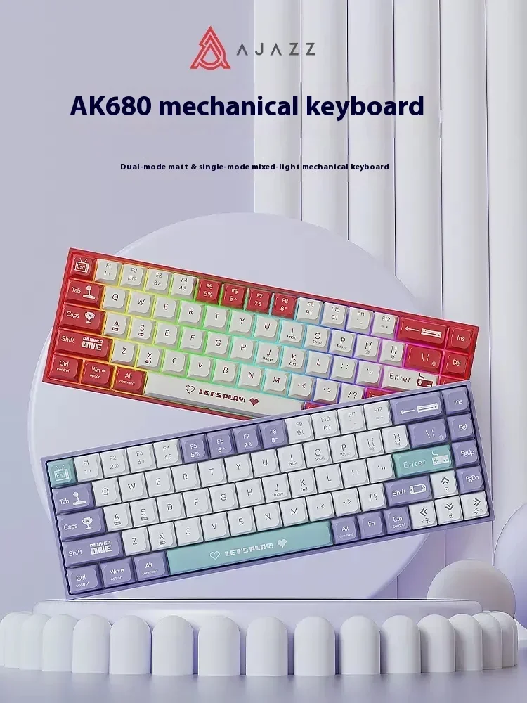 AJAZZ AK680 Mechanical Keyboard Dual-mode Hot-Swap 68keys E-sports Gaming Keyboard RGB Backlight Customization Keyboards Gifts