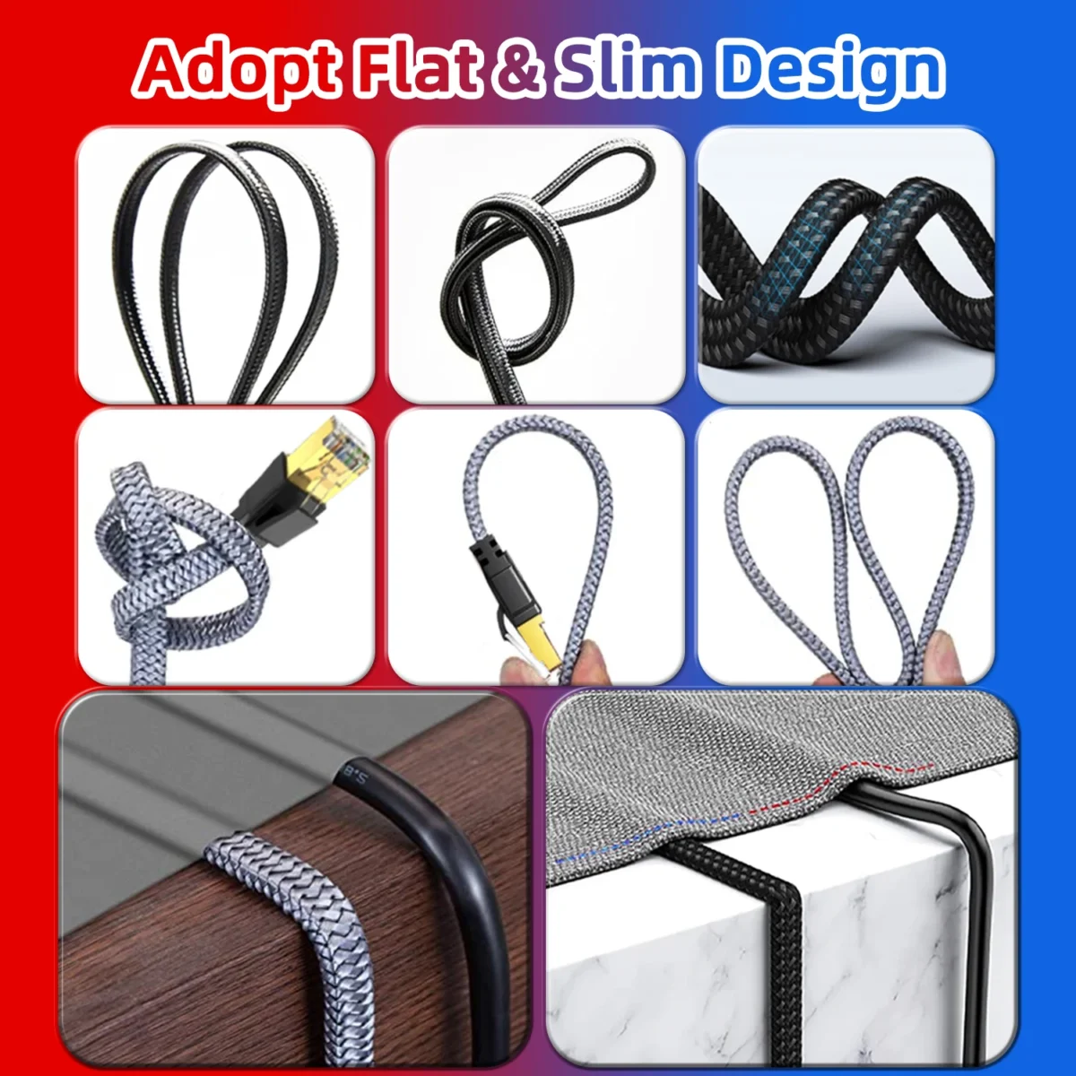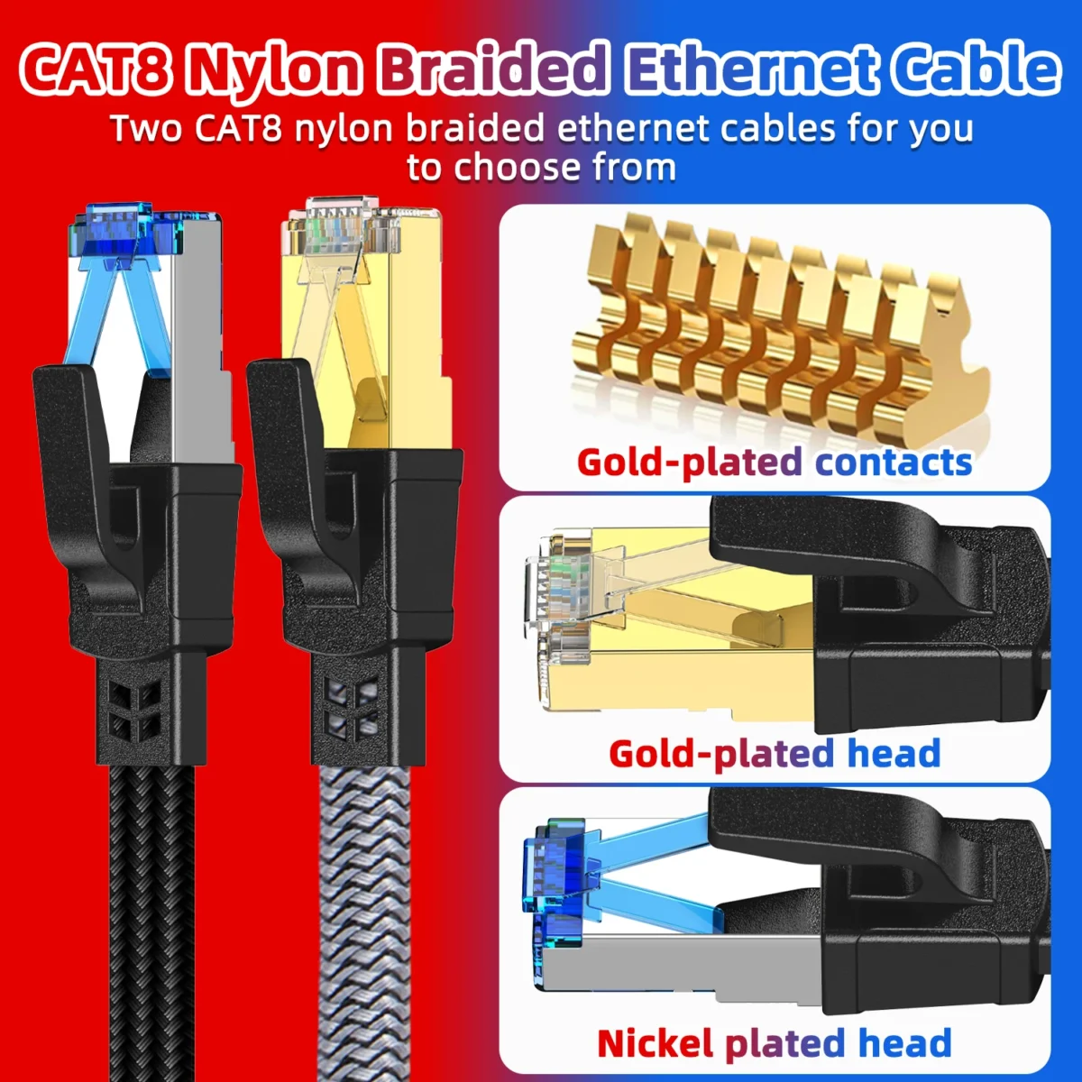 CAT8 Ethernet Cable 40Gbps 2000NHz Nylon Braided Flat RJ45 Network Lan Patch Cord for Laptops PS5 Router Internet Cable Cat 8
