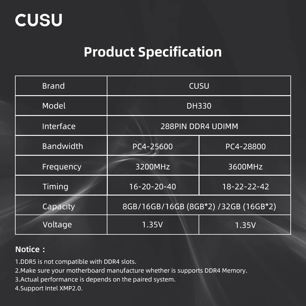 CUSU DDR4 8GB 16GB 3200MHz 3600MHz DDR4 Ram Memory DDR5 4800MHz 5600MHz 6400MHz 32GB UDIMM 288pin Desktop Memory