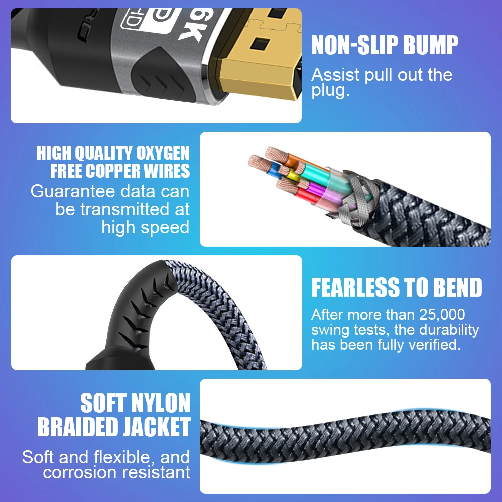FDBRO 16K Displayport Cable DP2.1 Aluminum Alloy 4K@144Hz 16K@30Hz for TV Box PC Laptop Monitor Video Game DP Cable Display Port