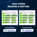 Utilized advanced M.2 NVMe Gen3x4 interface for an incredible 2400MB/s read speed.
