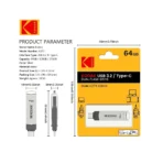 ? High-Speed USB 3.2 :Experience rapid data transfer with the Kodak USB3.2 Type C Flash Drive's high-speed USB 3.2 interface, ensuring efficient file management and quick backups.