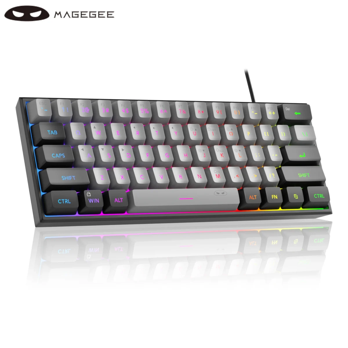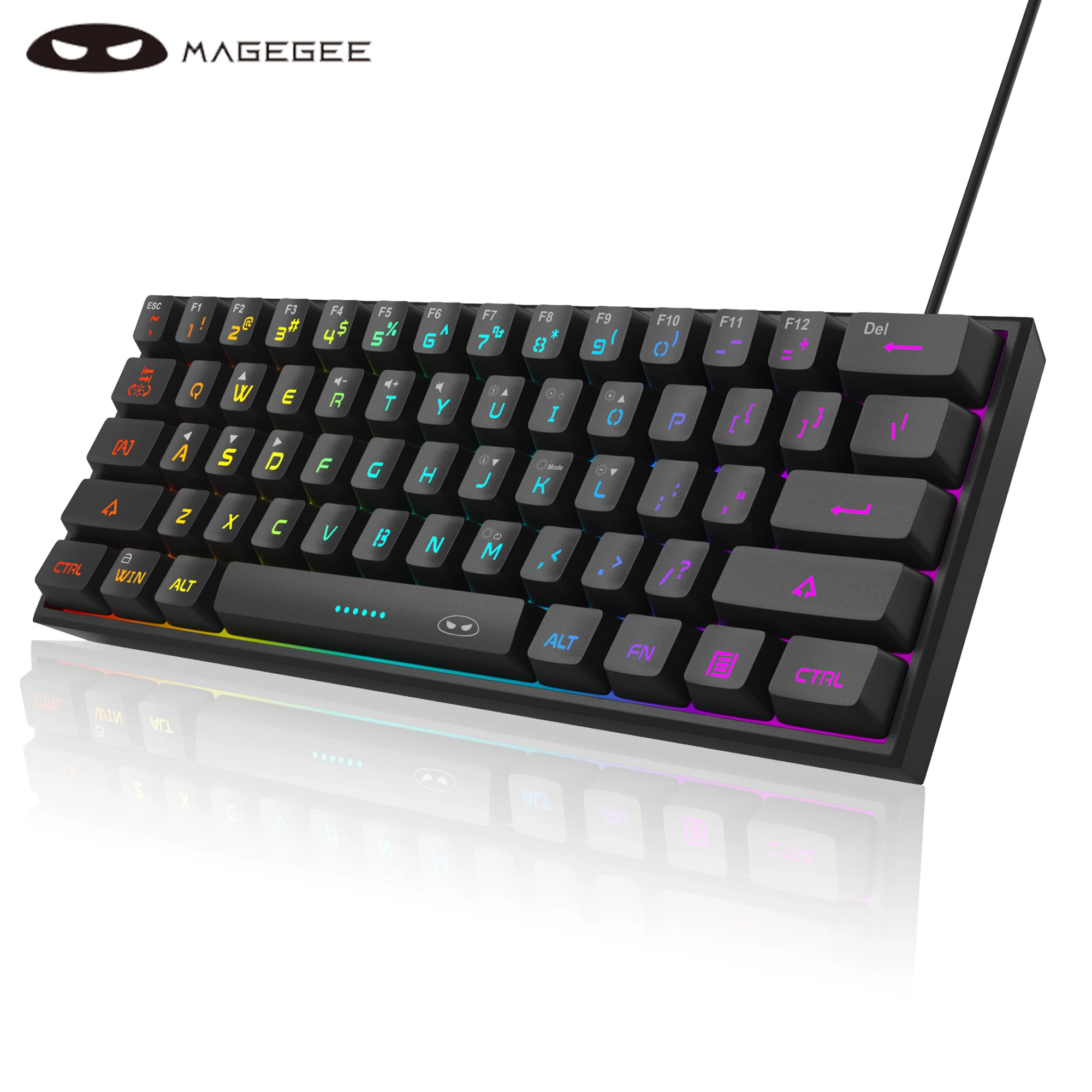 MageGee TS91 60% Compact Wired Keyboard 61 Keys RGB Backlight Small Portable Office Computer Membrane Keyboard For Windows Table