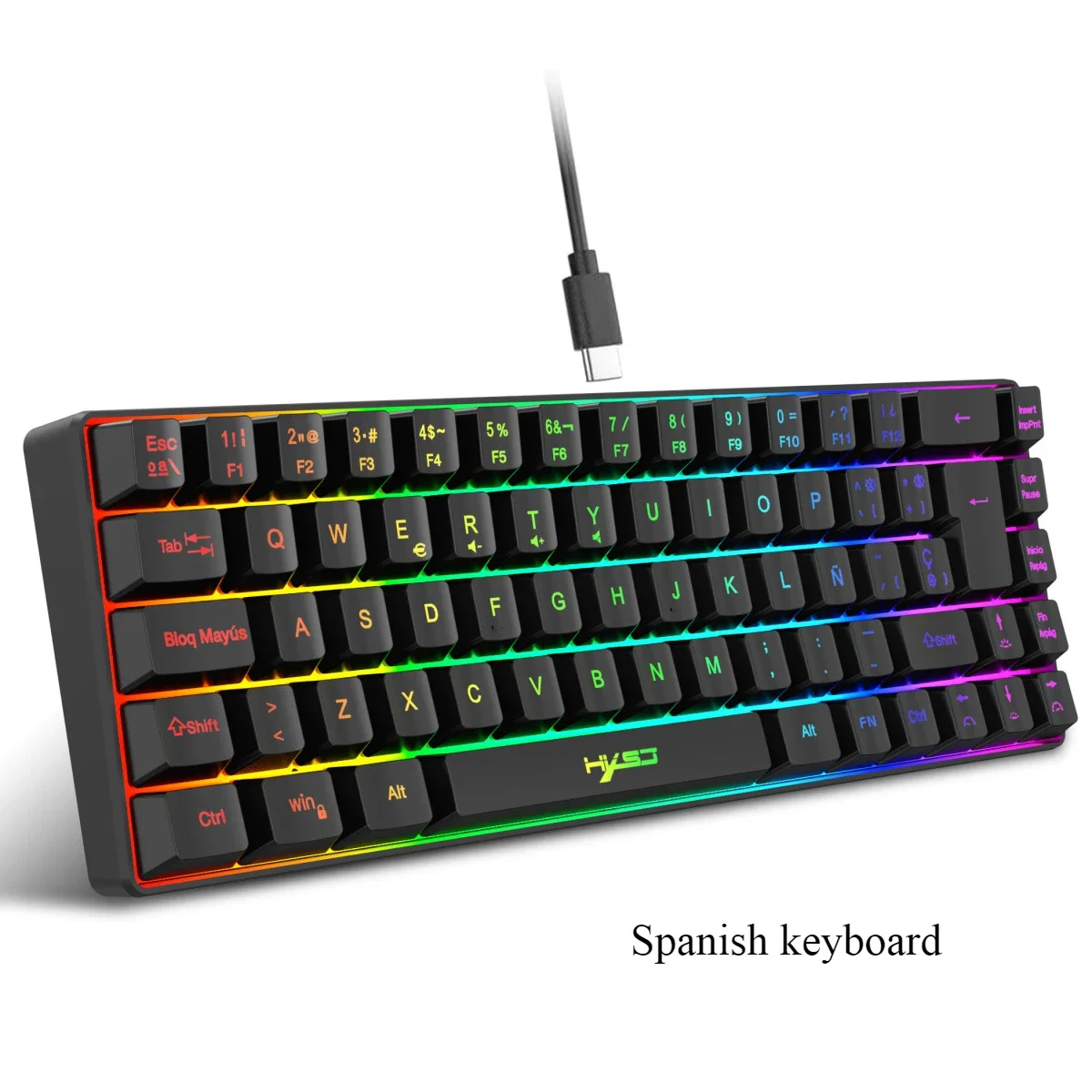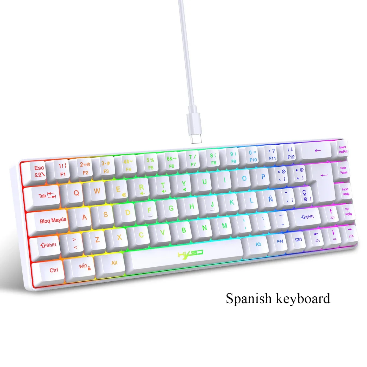 RGB backlit keyboard Spanish 69 keys white membrane gaming wired ergonomic Keyboards for compact mini for pc laptop color black