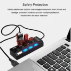 USB 2.0 Hub Multi USB Splitter Ports Hub Use Power Adapter 4/ 7 Port Multiple Expander Hub with Switch 30CM Cable For Home