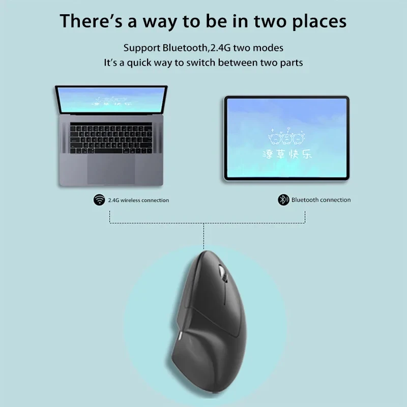 Left Right Hand Mouse Vertical Ergonomic Wireless with Bluetooth Double Mode Mouse Computer PC Mice Rechargeable Gaming Mouse