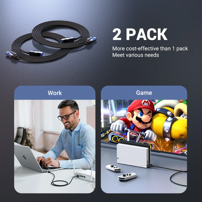 [2 Pack]UGREEN CAT8 Ethernet Cable 40Gbps 2000MHz Networking Cotton Braided Internet Lan Cord for Laptops PS 4 Router RJ45 Cable